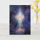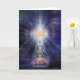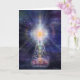 Transparent meditator sitting on lotus bed in space with coloured chakras and radiant light above. By Daniel B. Holeman.