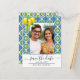 Mediterranean blue and yellow tile lemon wedding a announcement postcard
