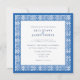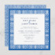 An elegant wedding invitation featuring a Greek key frame in cool Aegean / Mediterranean colours.