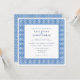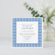An elegant wedding invitation featuring a Greek key frame in cool Aegean / Mediterranean colours.