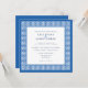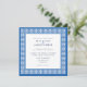 An elegant wedding invitation featuring a Greek key frame in cool Aegean / Mediterranean colours.