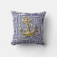 Mediterranean blue Greek Pattern Nautical Anchor Cushion