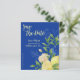 Mediterranean Blue Lemon Wedding Save the Date | Elegant Yellow & Blue Watercolor Card .
