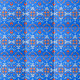 This ceramic tile features a bold, vibrant blue as its base colour. This striking background is adorned with ornate patterns in contrasting orange and lighter blue hues, creating an eye-catching visual effect. The design is complex and symmetrical, consisting of intricate swirls, loops, and geometric shapes that are symmetrically arranged. At the centre of the design are prominent orange motifs, surrounded by lighter blue elements that extend outward in an elaborate display. This intricate pattern is reminiscent of traditional Mediterranean or Moorish designs, offering a sense of elegance and artistry.