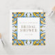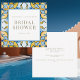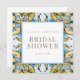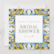 Blue & Yellow Bridal Shower Invitation. Square. Gold text. Mediterranean.