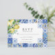 This elegant wedding RSVP/response/reply card features a white background with blue Mediterranean tiles and lemons/citrus in watercolor. Personalise it for your needs. You can find matching products at my store.