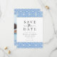 Mediterranean Blue Tile Script Photo Wedding Save The Date