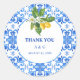 Mediterranean blue tiles and lemons wedding classic round sticker