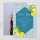 Boho Script Mediterranean Blue Tiles Lemon Summer Photo Graduation Invitation