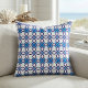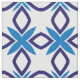 Modern simple fabric design featuring a seamless pattern made of geometric shapes in two different shades of blue on a white background. The colour of the background is fully customisable.
