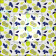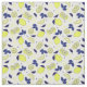 Mediterranean yellow and blue lemons, slices and leaves pattern fabric