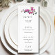 An elegant wedding invitation set featuring a watercolor Mediterranean bougainvillea branch in pink and burgundy with some greenery.