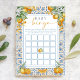 Mediterranean Citrus Baby Shower | Baby Bingo Game Advice Card