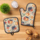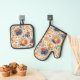 Add a splash of Mediterranean vibrance to your kitchen with this beautifully designed oven mitt and pot holder set. Featuring an intricate and colorful pattern of pomegranates, oranges, and grapes, this set brings warmth and Mediterranean charm to your cooking routine while keeping your hands safe from heat. Perfect for home cooks who love blending style with functionality.