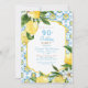 90th Birthday Party Invitation. Mediterranean. For Her. Colourful. Blue and Yellow and turquoise.