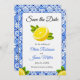 Mediterranean Wedding Theme - Mediterranean Italian Blue Tile Lemon Wedding Photo Save the Date!
