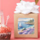 This vibrant artwork captures a dreamy Mediterranean coastal scene, where lush lavender fields gently slope down to meet crystal-blue waters dotted with elegant sailboats. The painting blends the charm of a French Riviera village—complete with stone cottages and a quaint church tower—with the breezy calm of a summer seascape. Gulls glide over the tranquil ocean, and the golden light of dusk casts a warm glow across the pine-fringed cliffs. The soft watercolor style adds an ethereal quality, enhancing the peaceful and romantic ambiance of the composition. Ideal for evoking feelings of escape, serenity, and the timeless beauty of Provence. AI generated artwork.