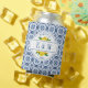 Mediterranean Lemon Blue Tile Wedding Can Cooler