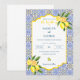 Celebrate your special day with this elegant Mediterranean-inspired wedding invitation. Featuring vibrant lemons and intricate blue tiles, it sets a cheerful and timeless tone for your wedding. Perfect for summer or destination weddings!