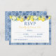 Watercolor bright yellow blue lemon with Mediterranean and Italian tile wedding RSVP response cards.