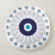 Mediterranean Navy Aqua Blue Lucky Eye Mandala Round Cushion
