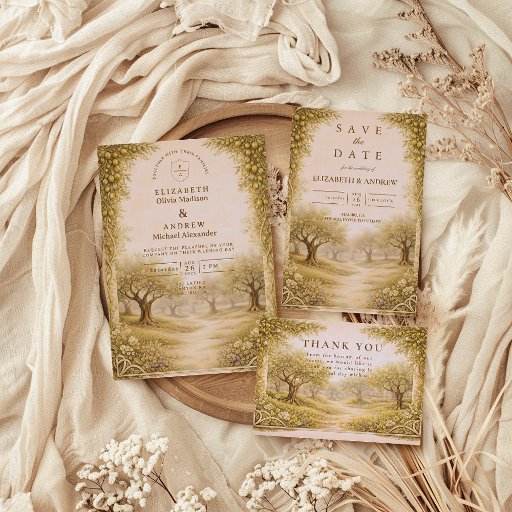 Mediterranean Olive Grove Countryside Wedding Invitation