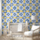 Elevate your interior decor with our Mediterranean Pattern Tile Room Wallpaper in serene shades of blue and yellow. Inspired by the tranquil beauty of Mediterranean tile designs, this wallpaper brings a touch of timeless elegance to any space. The intricate pattern features geometric motifs and floral accents, creating a harmonious and sophisticated backdrop that transforms your living room, dining area, or bedroom into a sanctuary of Mediterranean charm. Whether you're looking to create a focal point with an accent wall or to revitalise your entire room, this peel and stick wallpaper offers a convenient and stylish solution.