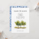 Announce your special day with this elegant Save the Date card! The design features a beautiful watercolor illustration of lemon trees on the front, capturing the charm of the Mediterranean. The back showcases a classic blue Italian pattern. Perfect for a summer or destination wedding!