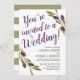 A set of elegant wedding invitations featuring painted style Mediterranean olives. The words "You're invited to a wedding" frame the front of the invitation along with your wedding details underneath it. On the reverse side are white and sage green stripes. All Individual elements of this invitation are customisable (including the bold statement text) simply use the customisation function. Enjoy creating and making it your own!