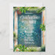 Boho elegant Mediterranean style summer tropical "Graduation Pool Party" design featuring your party details overlaid on a gorgeous aqua tiled swimming pool surrounded by beautiful, lush green tropical foliage.