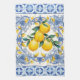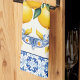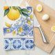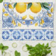 Mediterranean tile and lemon bouquet kitchen towels. Beautiful lemons on a blue and white Mediterranean tile background. You can add text to personalise.