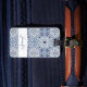 Trendy Mediterranean tiles luggage tag editable background. This is specially designed for elegant and trendy girls.