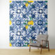 Mediterranean tiles,majolica,blue tiles,lemons tapestry