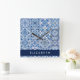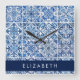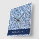 Mediterranean Tiles, Portugese, Azulejo, Your Name Square Wall Clock