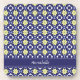 Modern blue and yellow Moroccan floral pattern coaster. Personalise with your name.