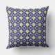 Modern blue and yellow Moroccan floral pattern pillow. Personalise with your name.