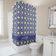 Modern blue and yellow Moroccan floral pattern shower curtain. Personalise with your name.