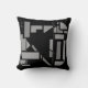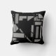 Featured are bold, but muted geometric shapes in medium grey shades on a black background that come together in an abstract design, which is contemporary and inspired by the Mid-Century Modern and Native American/Southwest art styles. This is an exotic and contemporary motif suggestive of both a tribal art and a mosaic pattern in black-and-white. This is an artistic and polished design for living area, bedroom, workspace, terrace, or patio decor and creates a feeling of warmth and relaxation. There is much decorative potential in this accent piece, which fits into the vibe of numerous styles, from retro/vintage to rustic ranch to modern urban.