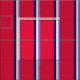This design features a medium slate blue, tan, midnight blue, and crimson coloured striped pattern.