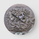 The shrieking and severed head of the Gorgon Medusa along with two blades and a smirking satyr on the shield of Athena. Laurel leaves, symbols of victory related to Athena, support the shield. This version features a numberless clockface.