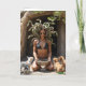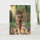 A cute dog greeting card featuring Medusa walking her small dogs in the woods.