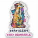 A meerkat sticker typically features this small, curious mammal with its distinctive upright posture, large dark eyes, and pointed ears. The design may show the meerkat standing on its hind legs, scanning the surroundings for danger, or interacting with its group in a playful or alert manner. Known for their social structure and constant vigilance, meerkats are often depicted in groups, reflecting their cooperative and energetic nature. Whether realistic or stylised, the sticker captures the meerkat's endearing and inquisitive personality, making it perfect for animal lovers, wildlife enthusiasts, or anyone who enjoys the charm of this iconic desert dweller.