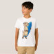 100% cotton so perfect for summer, It is a nicely designed t-shirt, the fabric is soft and the seams finished well, the body of the t shirt has no side seams. I bought a medium size for my two grandsons, aged 9 and 8 it will be slightly big on them but I would rather that than too small