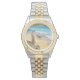The watch is very nice, the picture is great and the watch looks like quality. The only problem I am having with it is that it is a little too large, and I also can't figure out how to open the clasp. No directions came with it. Very good. The printing is perfect and the watch keeps good time.