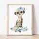 Meerkat, Safari, Jungle, Blue Flowers, Boy Nursery Poster