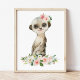 Meerkat, Safari, Pink Flowers, Girl Nursery Photo Print