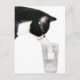 black and white tuxedo kitty dipping it's paw into a water glass for a drink
