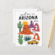 Venture into the captivating landscapes with this charming 'Meet Me in Arizona' postcard, featuring a delightful collection of Arizona icons in a fun doodle style! This whimsical illustrated postcard captures the state's iconic desert beauty, majestic rock formations, and sunny skies. It showcases everything from towering saguaro cacti and prickly pear plants to stunning red rock landscapes and a classic road trip car. The playful illustrations and clear lettering make this postcard a unique and memorable tribute to Arizona, USA
