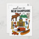 Discover the Granite State with this charming 'Meet Me in New Hampshire' postcard, featuring a delightful collection of New Hampshire icons in a fun doodle style! This whimsical illustrated postcard captures the state's rugged natural beauty, rich history, and beloved symbols. It showcases everything from a majestic moose and snow-capped mountains to a quaint covered bridge, maple sugaring buckets, and a nod to the iconic Old Man of the Mountain. The playful illustrations and clear lettering make this postcard a unique and memorable tribute to New Hampshire, USA.