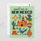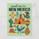 Embark on a Southwestern adventure with this charming 'Meet Me in New Mexico' postcard, featuring a delightful collection of New Mexico icons in a fun doodle style! This whimsical illustrated postcard captures the unique blend of Native American and Spanish heritage, desert landscapes, and vibrant traditions. It showcases everything from the sacred Zia sun symbol and a traditional adobe mission, to a graceful roadrunner, a colourful hot air balloon, and a classic cactus. The playful illustrations and clear lettering make this postcard a unique and memorable tribute to New Mexico, USA.